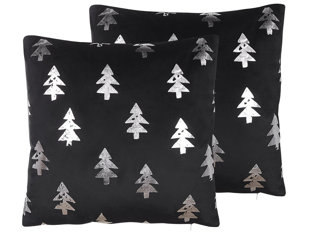 Set of 2 Scatter Cushions Black Velvet Fabric 45 x 45 cm Christmas Tree Pattern Zippered Cases Beliani is backordered and will ship as soon as it is back in stock.