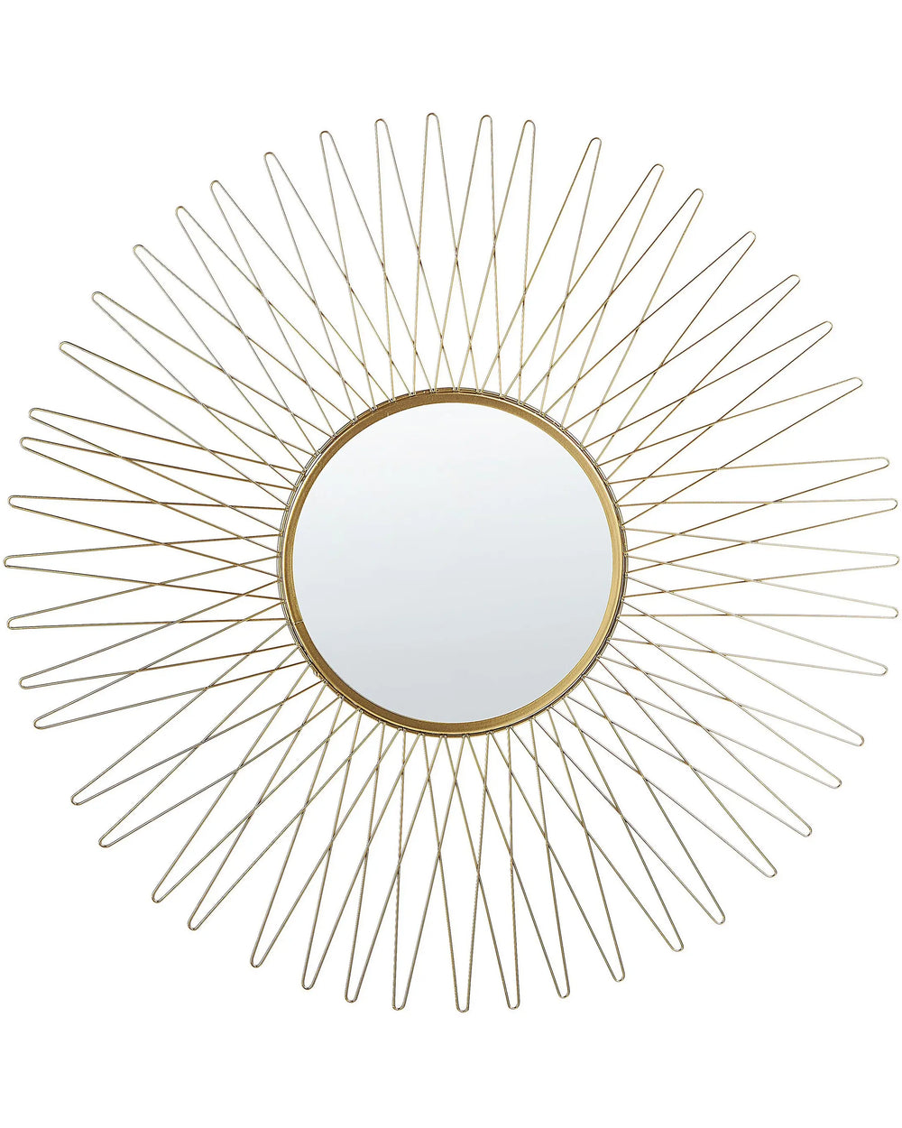 Wall Mirror Gold Metal Round 70 cm Sunburst Ornamental Glamour Living Room Bedroom Beliani is backordered and will ship as soon as it is back in stock.