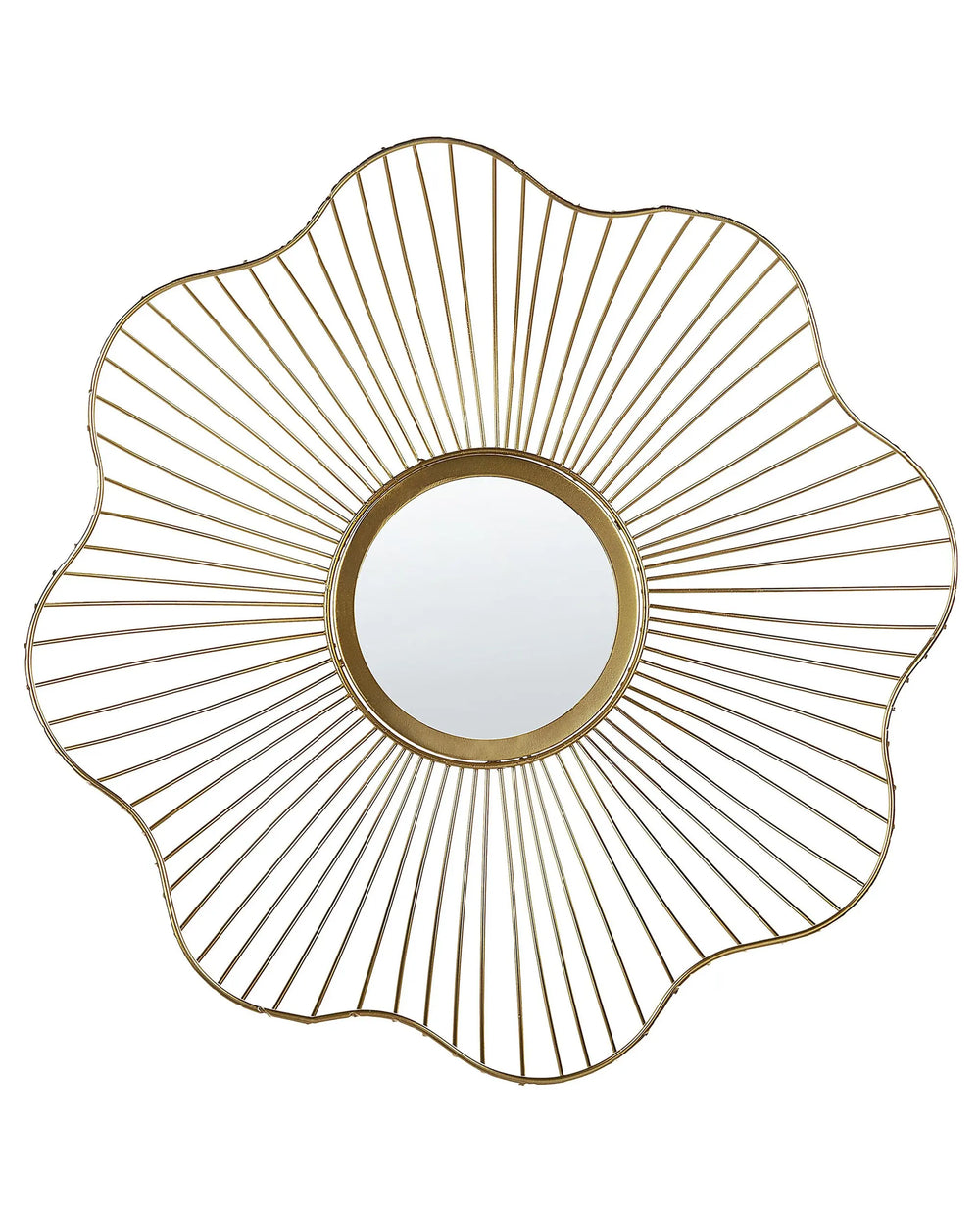 Wall Accent Mirror Golden Metal 40 cm Flower Shaped Glamour Living Room Bedroom Wall Hung Beliani