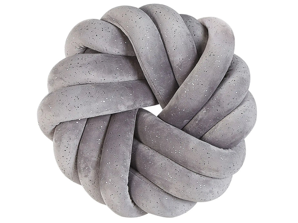 Knot Cushion Grey Velvet 30 x 30 cm with Glitter Tied-Up Plushy Decorative Modern Beliani