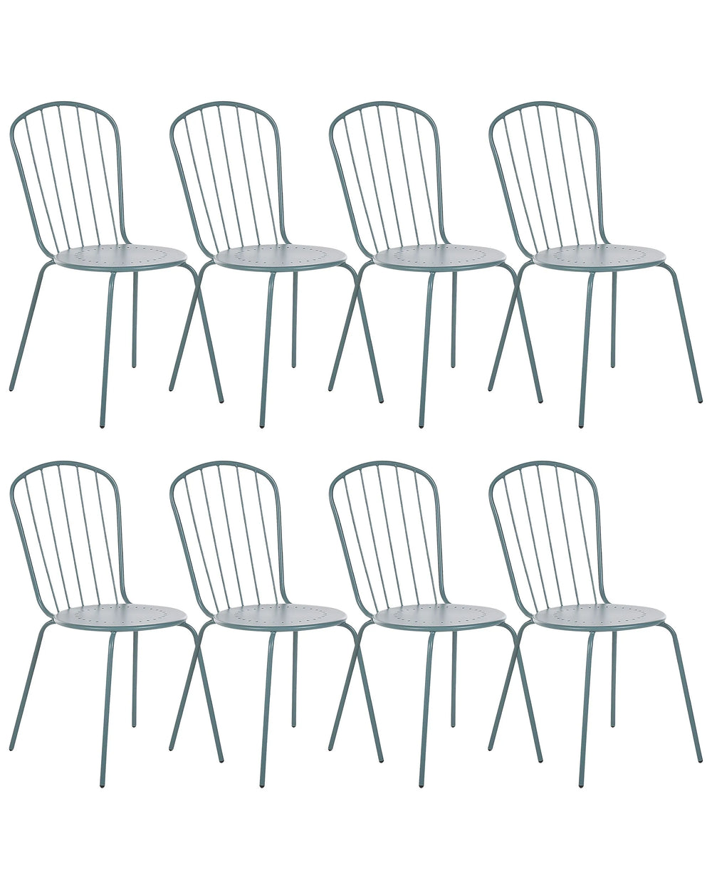 Set of 8 Garden Dining Chairs Light Blue Steel Modern Rust Resistant High Back Beliani