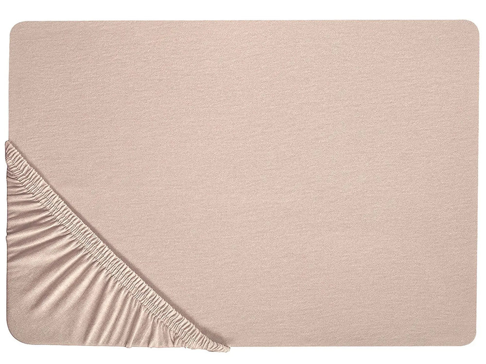 Fitted Sheet Beige Cotton 160 x 200 cm Solid Pattern Classic Elastic Edging Bedroom Beliani