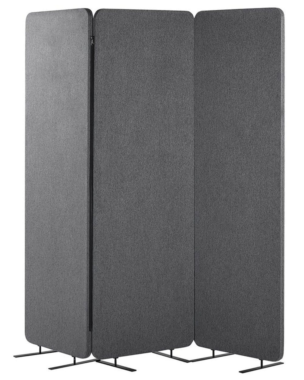 3-Panel Room Divider Grey Fabric Privacy Screen Office Partition Wall Noise Reducing Beliani