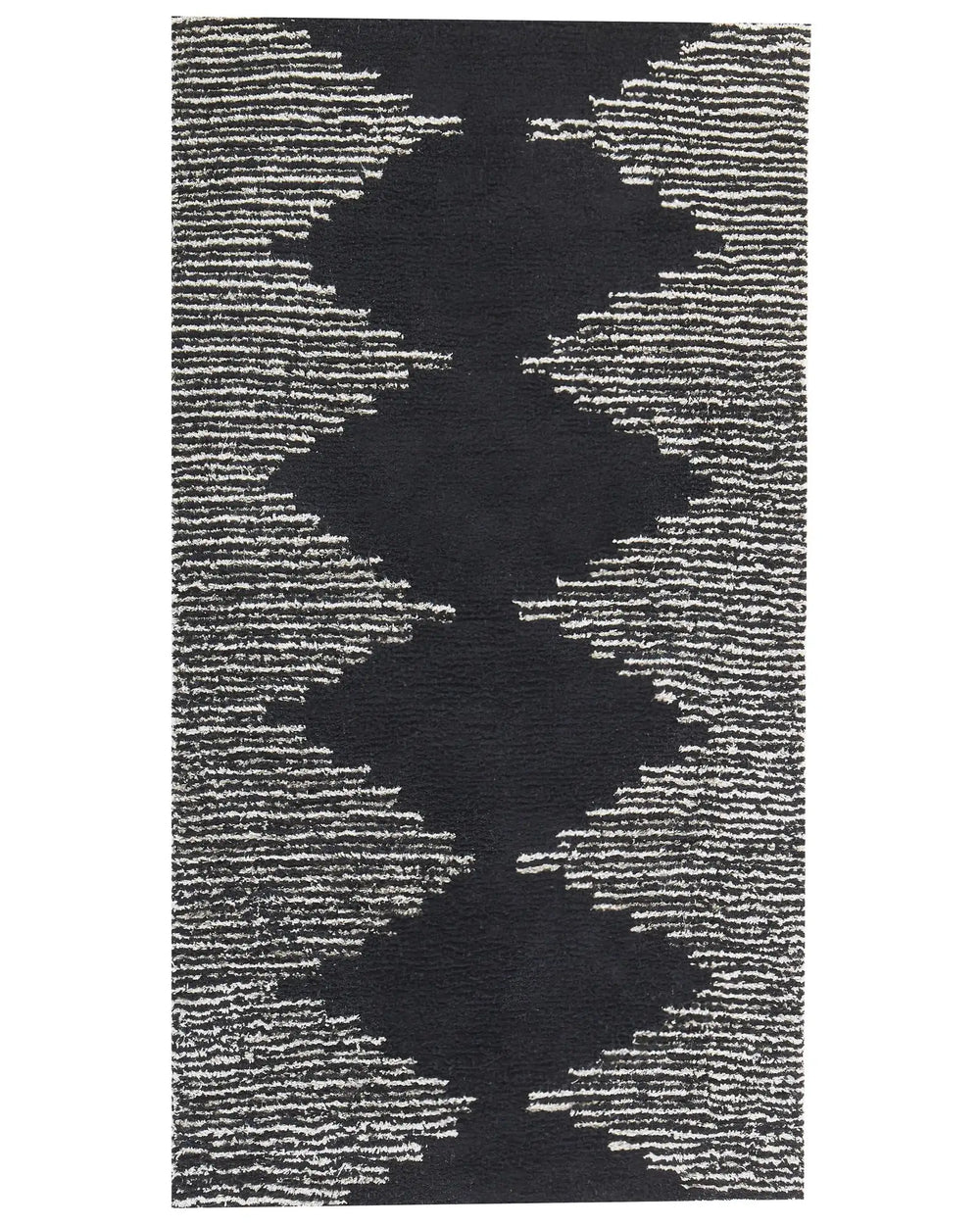 Area Rug Black and White Cotton 80 x 150 cm Scandinavian Geometric Pattern Rectangular Beliani