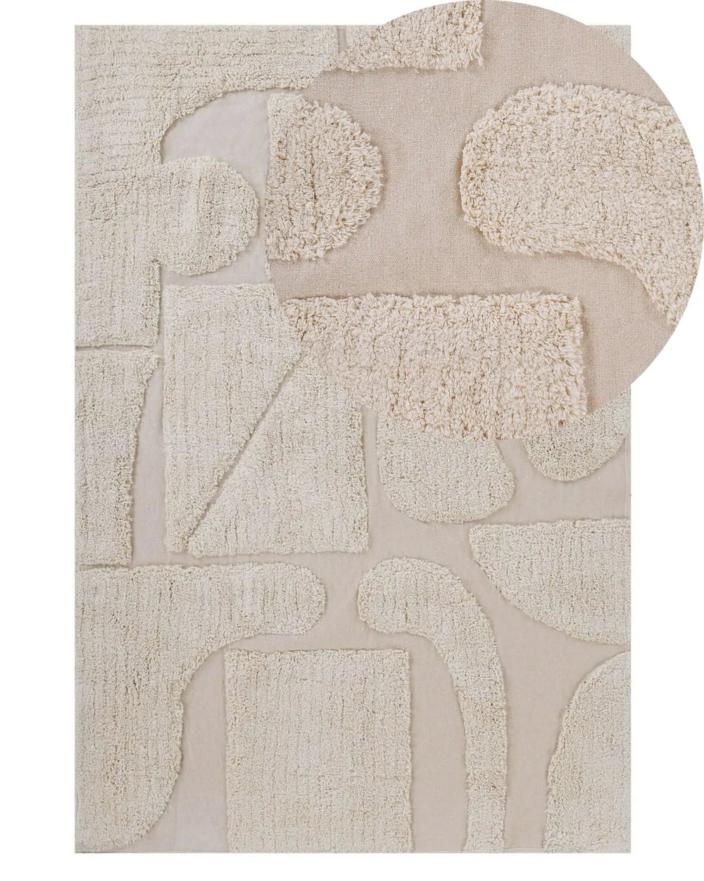 Area Rug Beige Cotton 140 x 200 cm Tufted Fluffy Abstract Pattern Living Room Bedroom Beliani