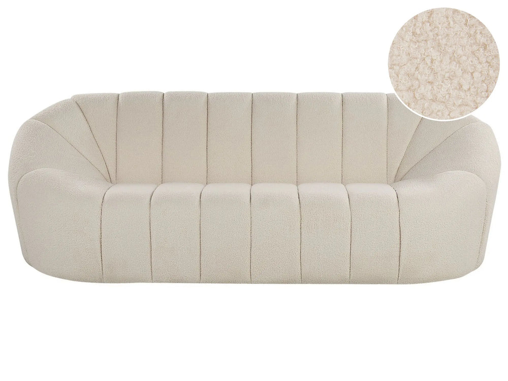 Sofa White Fabric 3 Seater Glam No Armrests Boucle Kidney Shape Wide Back Living Room Textured Fabric Beliani