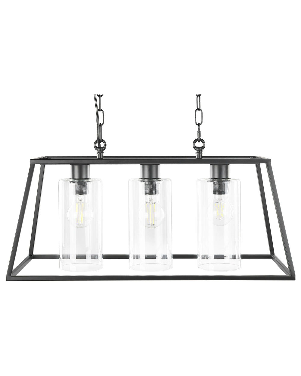 Pendant Lamp Black Metal 117 cm Cage Frame 3 Cylindrical Glass Shades Ceiling Light Beliani