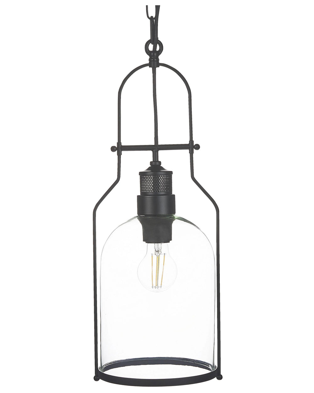 Pendant Lamp Black Metal 166 cm Frame Clear Glass Shade Retro Style Ceiling Light Beliani
