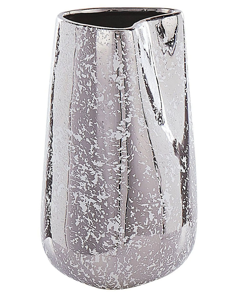 Decorative Vase Silver Stoneware 27 cm Home Accessory Tabletop Accent Piece Glamour Style Beliani