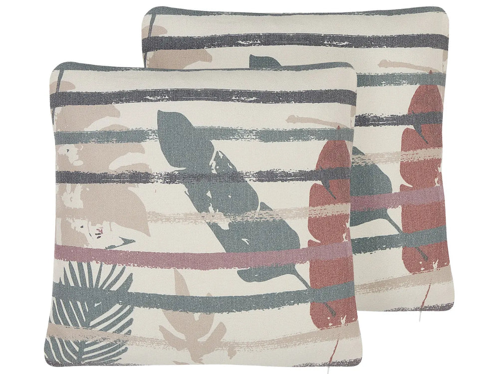 Set of 2 Decorative Cushions Multicolour Polyester Cotton 45 x 45 cm Striped Leaf Pattern Paint Print Pillow Decor Accessories Beliani is backordered and will ship as soon as it is back in stock.