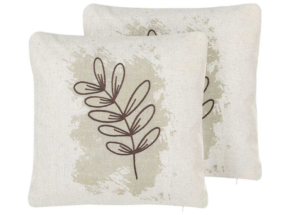 Set of 2 Throw Cushions Beige Polyester Blend 45 x 45 cm Decorative Soft Home Accessory Embroidered Leaf Beliani