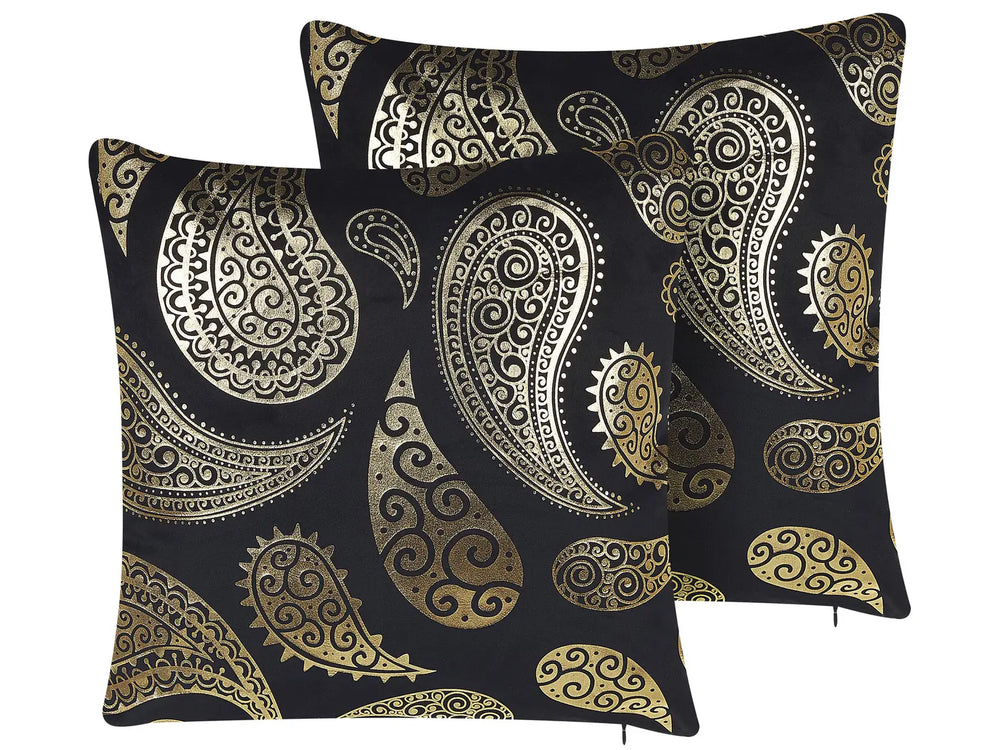 Set of 2 Cushions Gold Velvet 45 x 45 cm Paisley Foil Print with Filling Zipper Scatter Throw Pillow Beliani