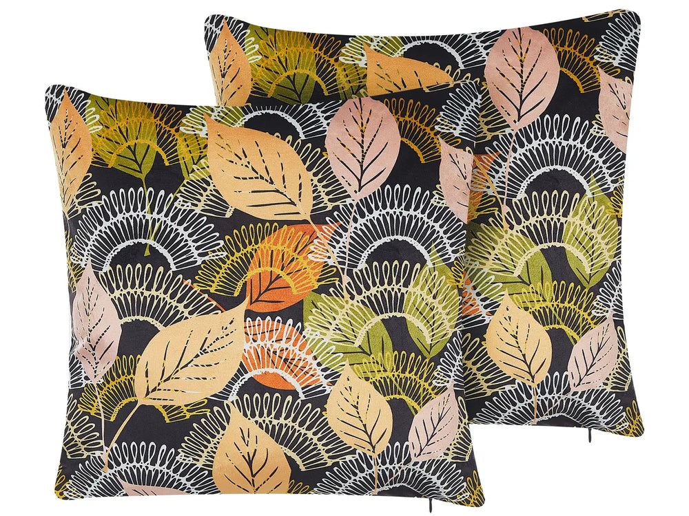 Set of 2 Cushions Multicolour Velvet 45 x 45 cm Leaf Pattern Print with Filling Zipper Scatter Throw Pillow Beliani is backordered and will ship as soon as it is back in stock.