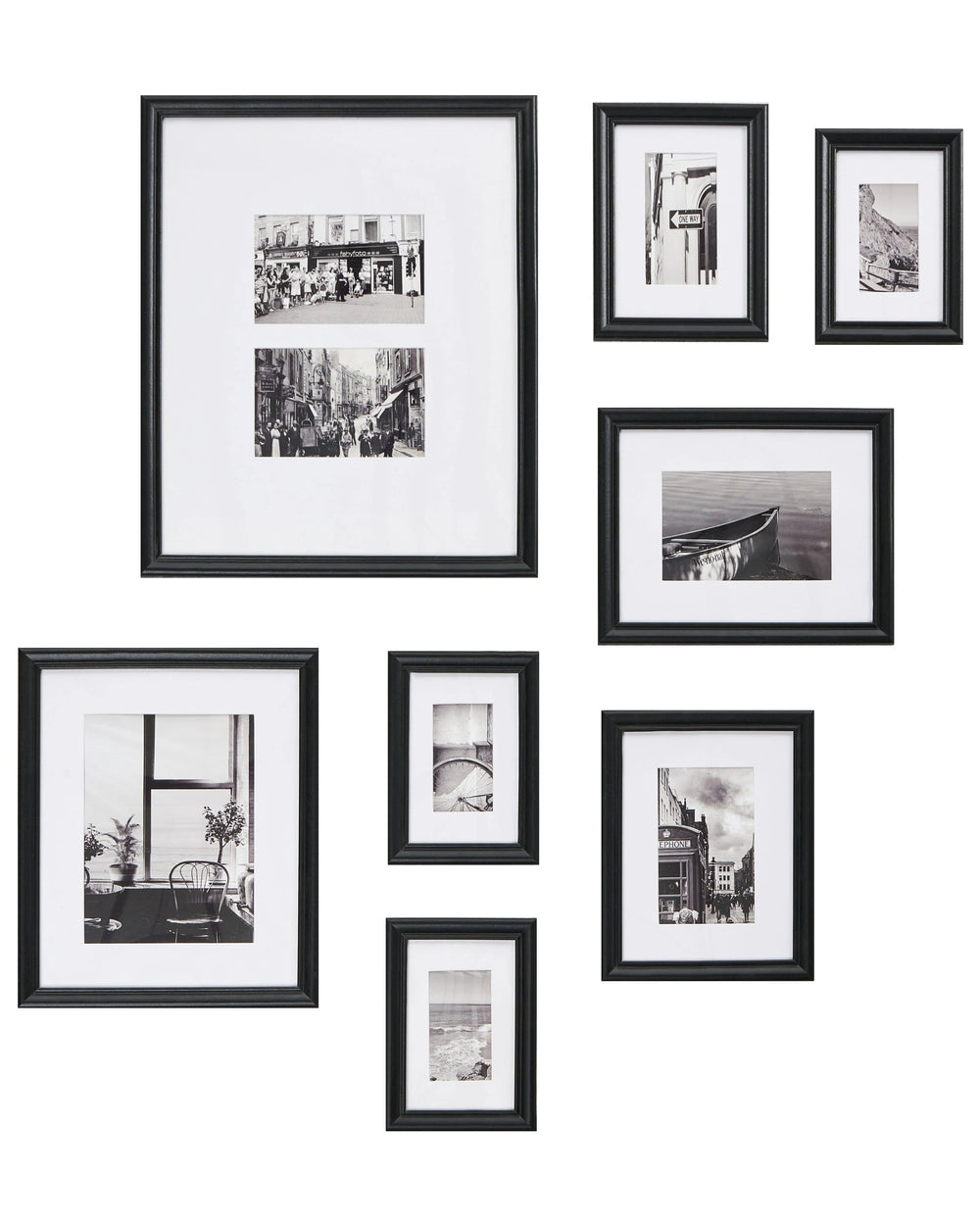 Set of 8 Framed Photos Black Various Sizes Modern Decor Gallery Hooks Beliani