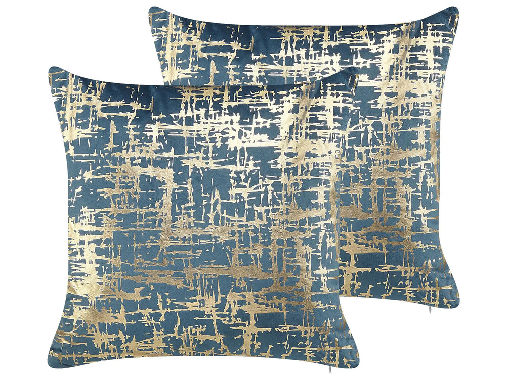 Set of 2 Decorative Cushions Polyester Blue and Gold Crackle Effect 45 x 45 cm Foil Print Pattern Beliani