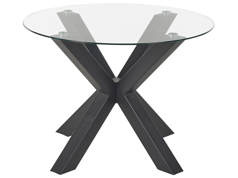 Dining Table black metal base glass top 100 cm Round Modern Beliani