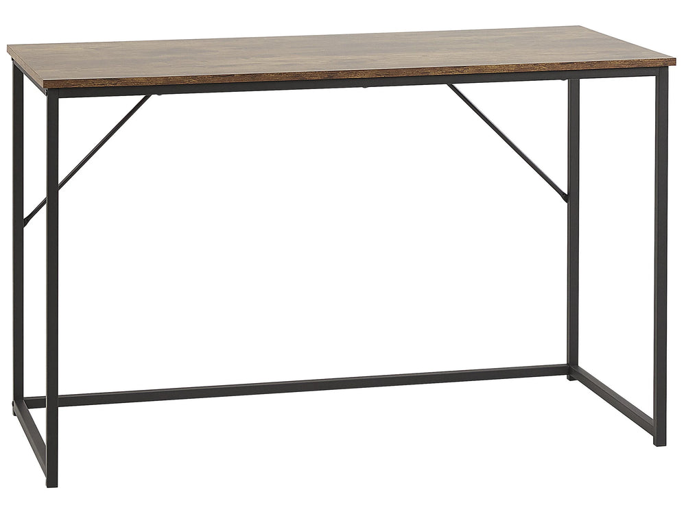 Home Office Desk Dark Wood and Black Metal Frame 120 x 55 cm Industrial Style Beliani