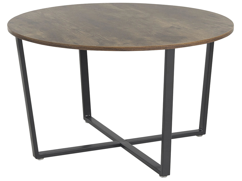 Coffee Table Dark Wood with Black MDF Top Metal Legs 80 cm Industrial Round Living Room Beliani