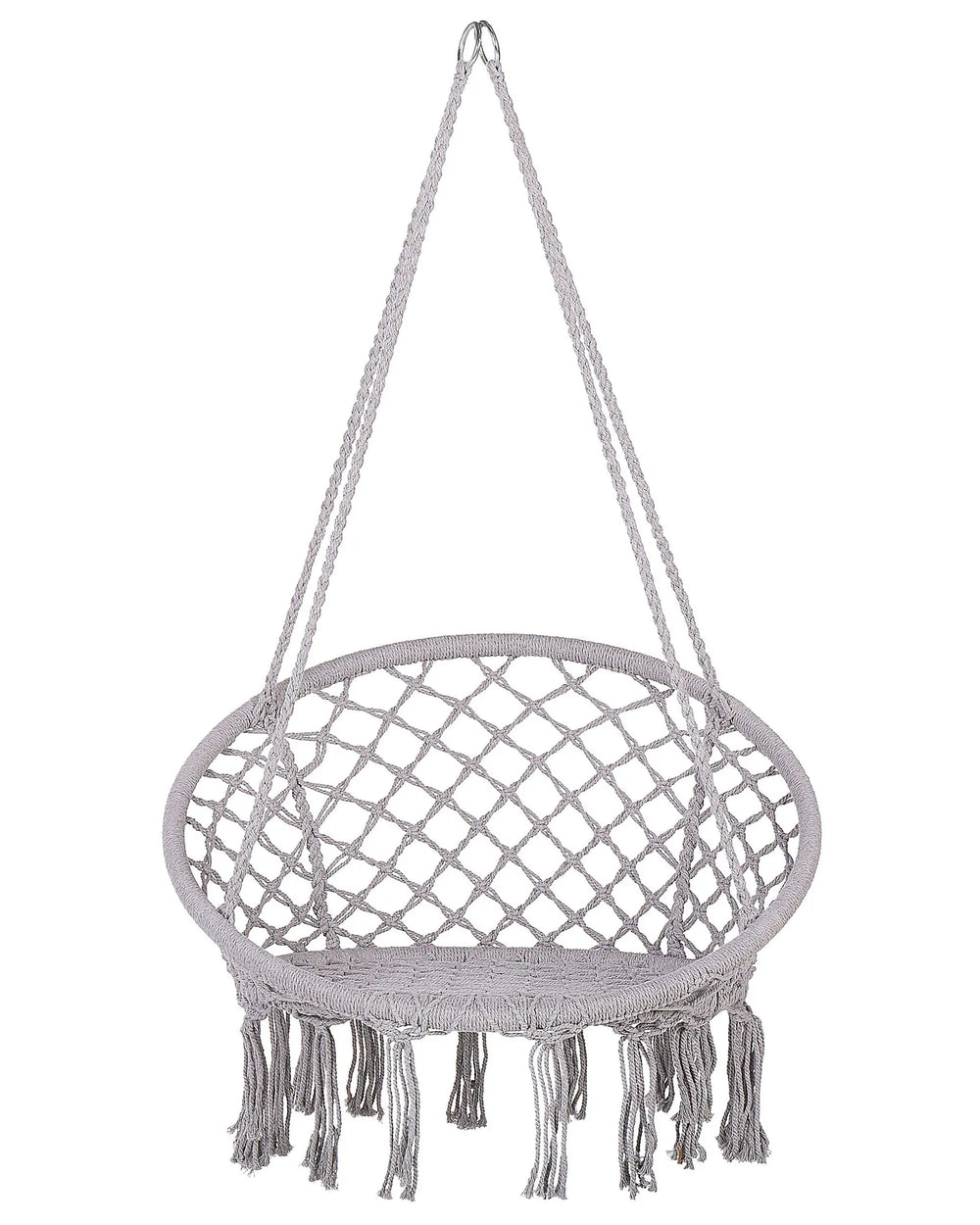 Hanging Chair Grey Macrame Plaited Seat Indoor Swing Chair Boho Style Beliani