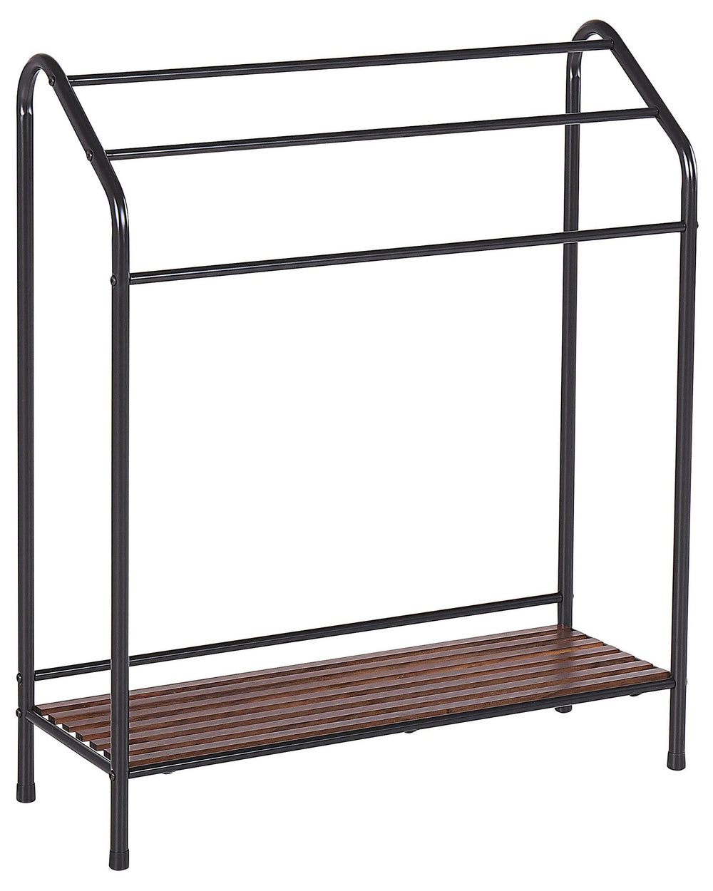 Towel Stand Black Steel Matt Powder Coated Dark Pine Wood Shelf 3 Rails Standing Towel Rack Modern Bathroom Accessories Beliani is backordered and will ship as soon as it is back in stock.