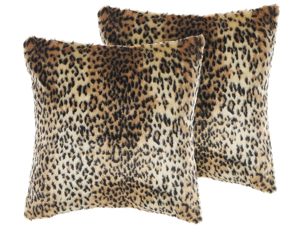 Set of 2 Throw Cushions Brown Acrylic 45 x 45 cm Glam Leopard Print Zipper Furry Living Room Bedroom Beliani