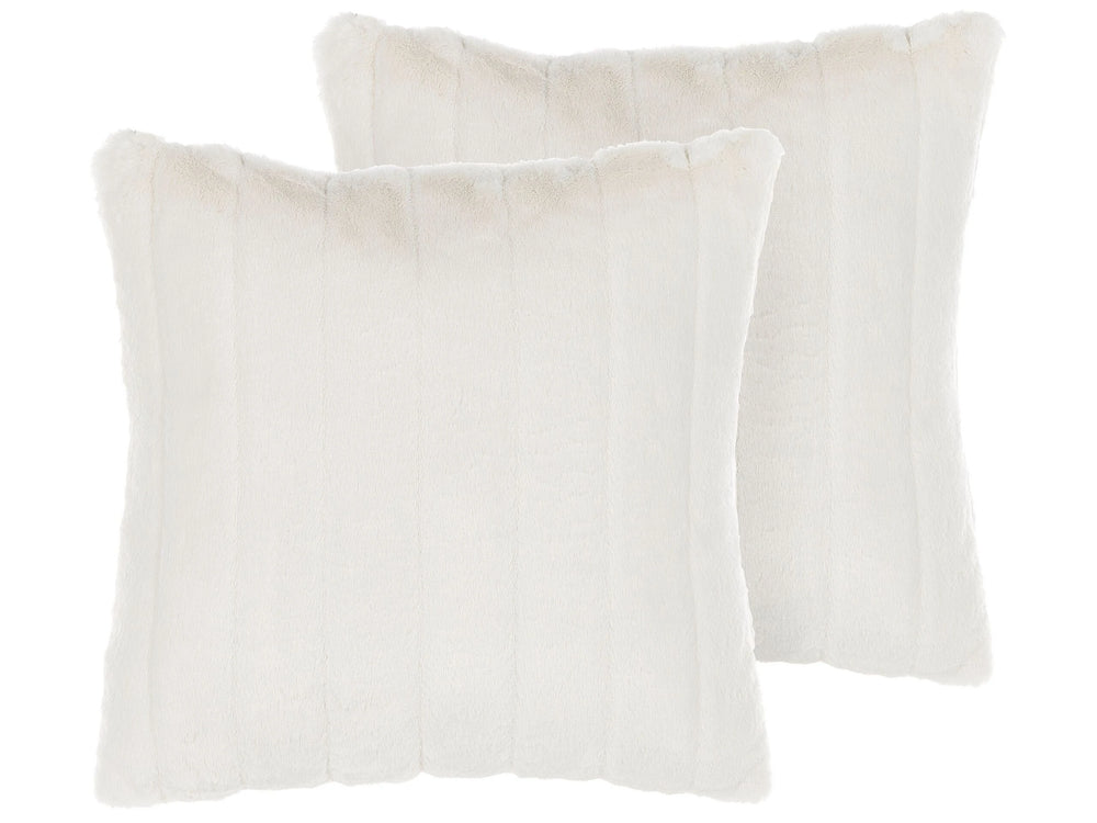 Set of 2 Throw Cushions White Polyester 45 x 45 cm Glam Embossed Zipper Furry Living Room Bedroom Beliani
