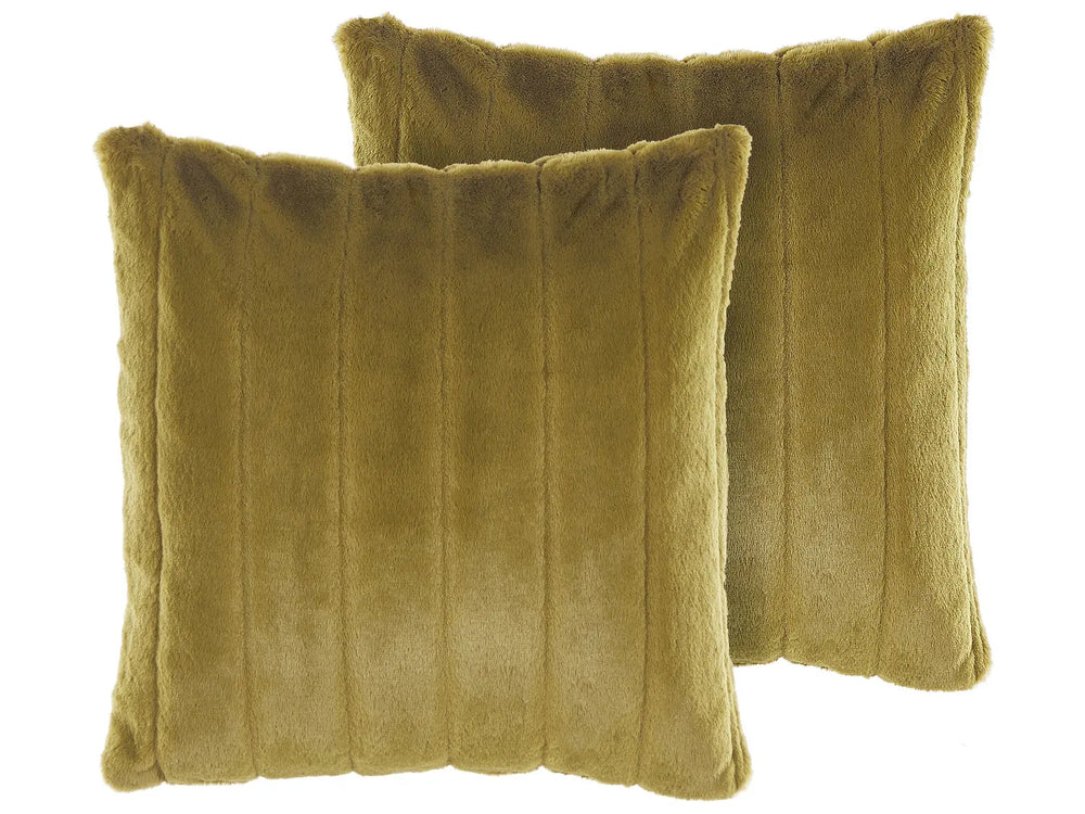 Set of 2 Throw Cushions Green Polyester 45 x 45 cm Glam Embossed Zipper Furry Living Room Bedroom Beliani is backordered and will ship as soon as it is back in stock.