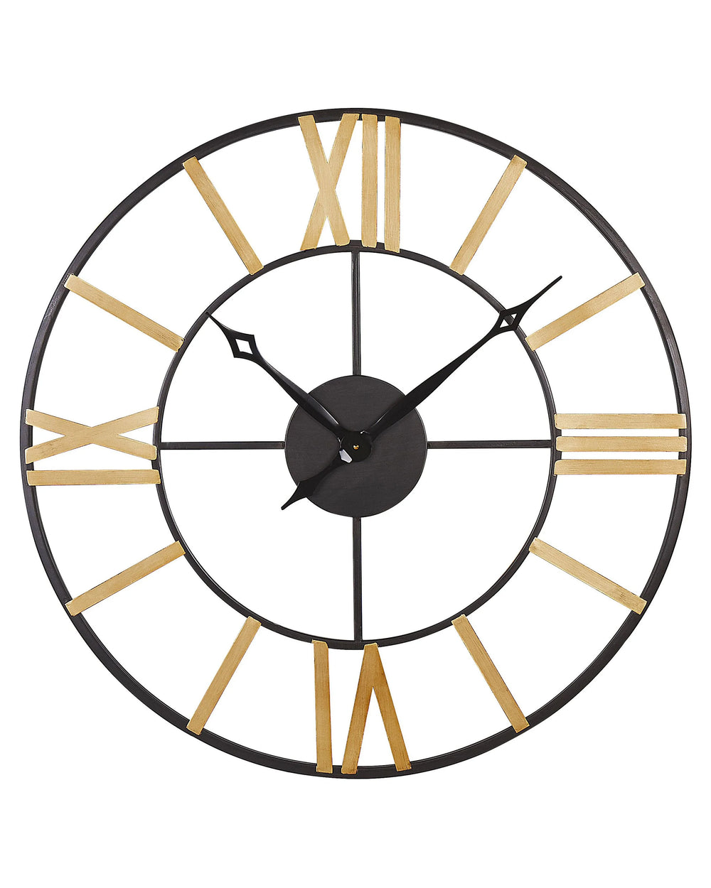 Wall Clock Black and Gold Iron Open Surface Roman Numerals Modern Design Home Decor Beliani