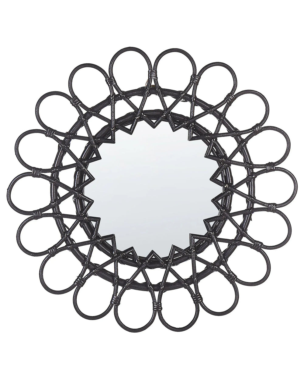 Wall Mirror Black Rattan Frame 60 cm Modern Sunburst Design Hanging Living Room Decoration Beliani