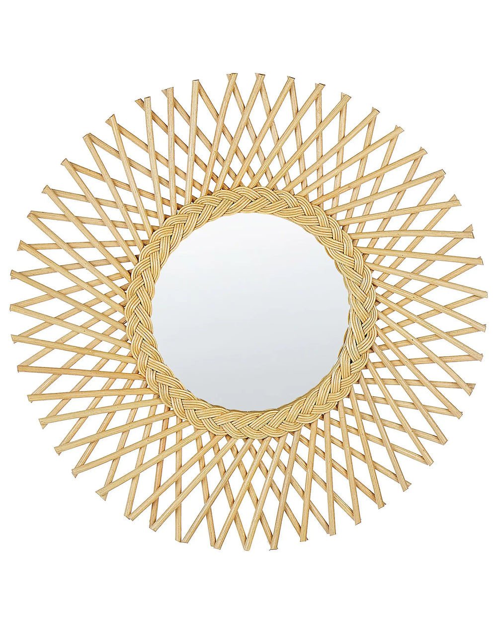 Wall Mirror Natural Rattan 60 cm Boho Sun Shape Round Mounting Hooks Openwork Living Room Bedroom Beliani is backordered and will ship as soon as it is back in stock.