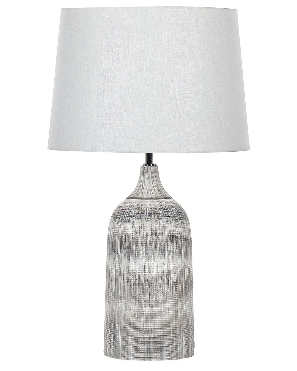 Table Lamp Grey Ceramic Base 66 cm White Fabric Shade Classic Bedside Table Light Beliani