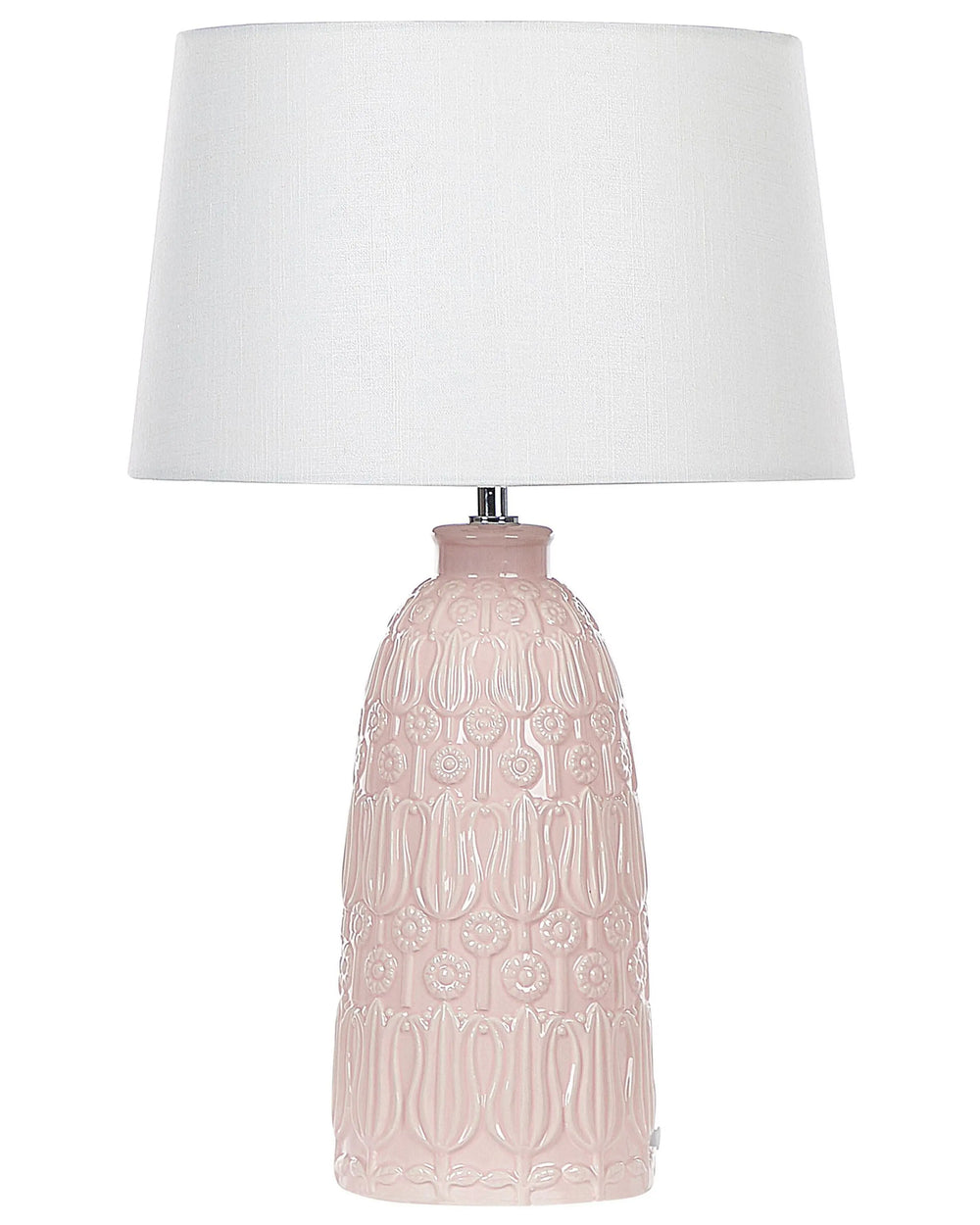 Table Lamp Pink Ceramic Adorned Base White Fabric Shade Boho Rustic Design Home Lightning Beliani is backordered and will ship as soon as it is back in stock.