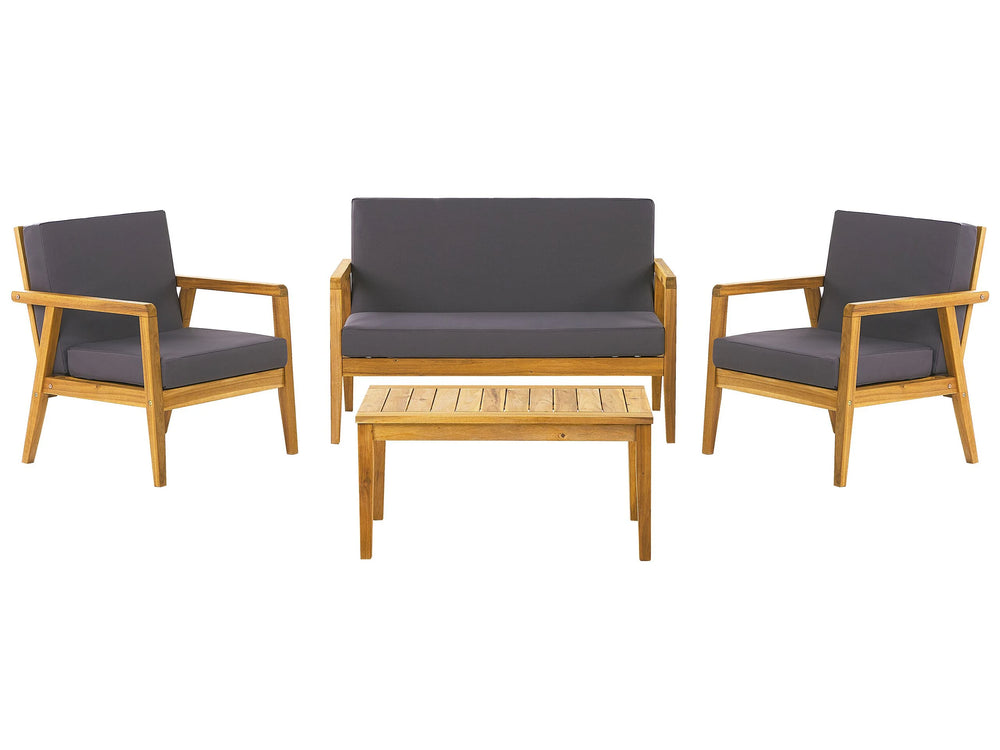 Garden Conversation Set Light Acacia Wood with Grey Cushions Sofa with Armchairs and Coffee Table Beliani is backordered and will ship as soon as it is back in stock.