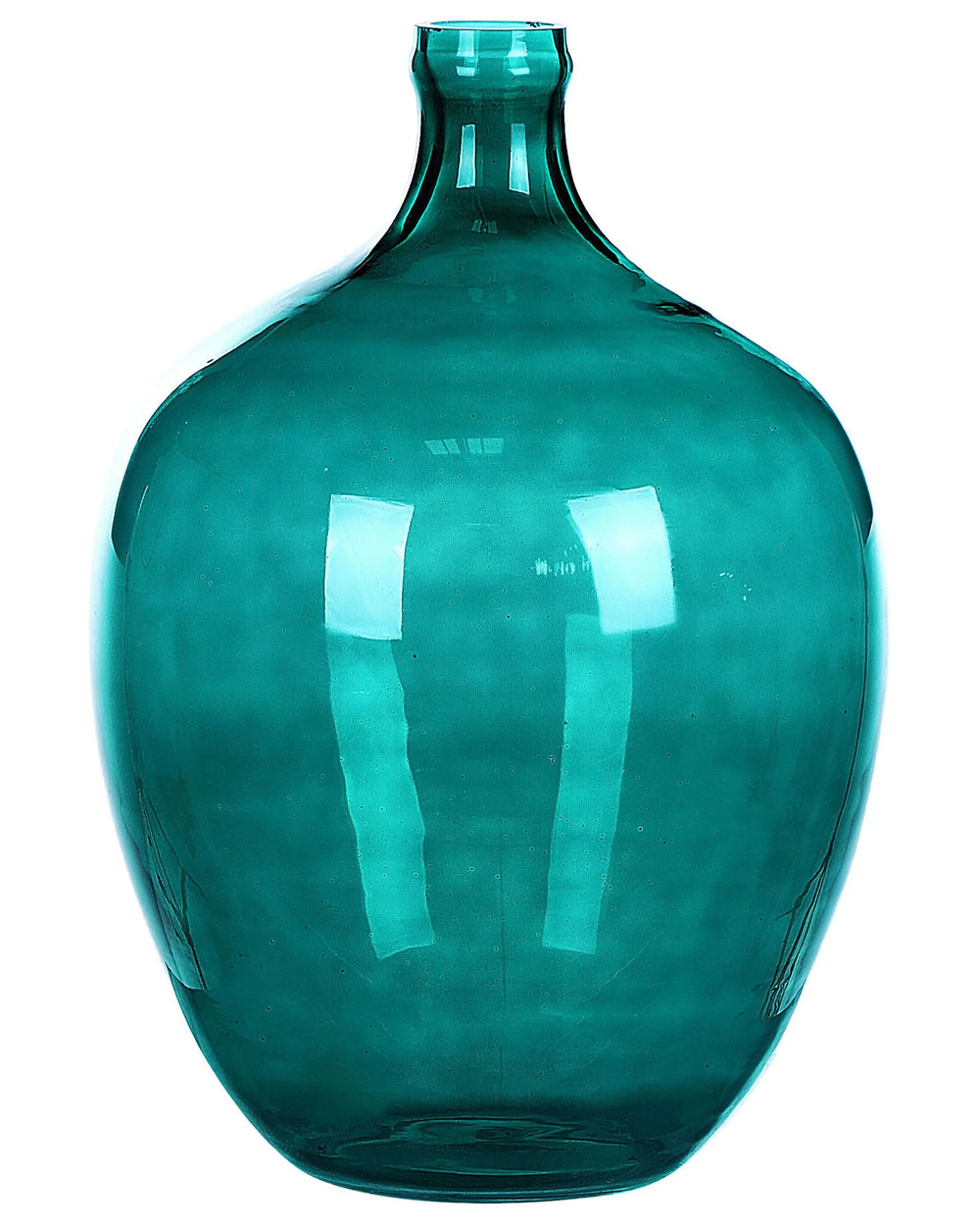 Vase Turquoise Glass 39 cm Handmade Decorative Round Bud Shape Tabletop Home Decoration Modern Design Beliani