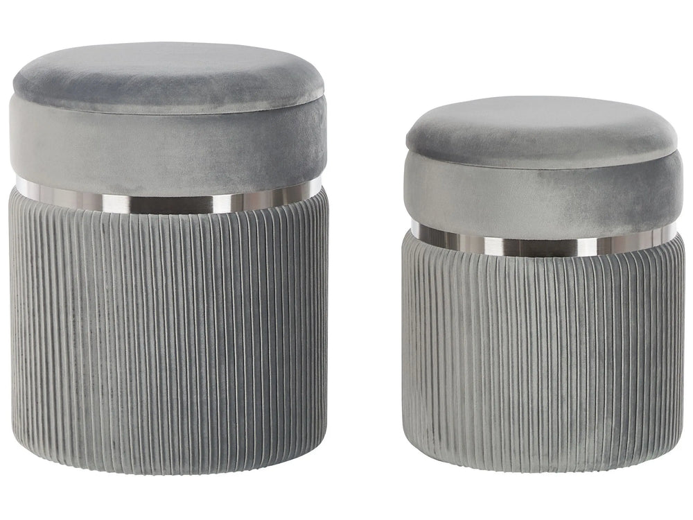 Set of 2 Pouffes Light Grey Velvet Metal Bands Glamour Internal Storage Living Room Bedroom Beliani is backordered and will ship as soon as it is back in stock.