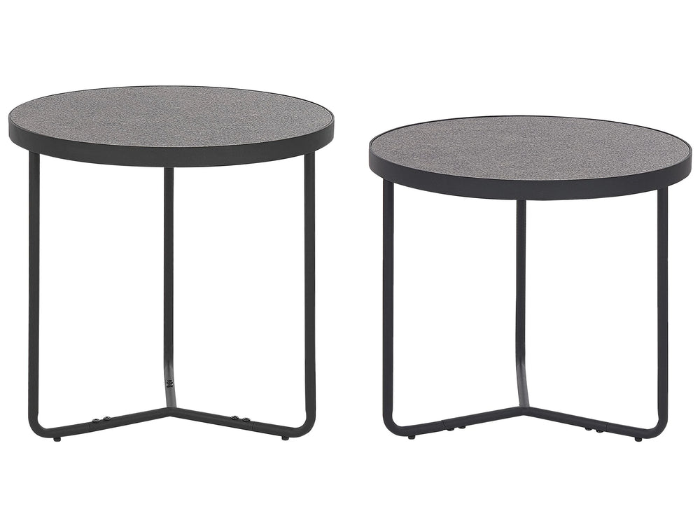 Set of 2 Coffee Tables Concrete Effect with Black Metal Legs Round Small and Medium Living Room Furniture Beliani is backordered and will ship as soon as it is back in stock.