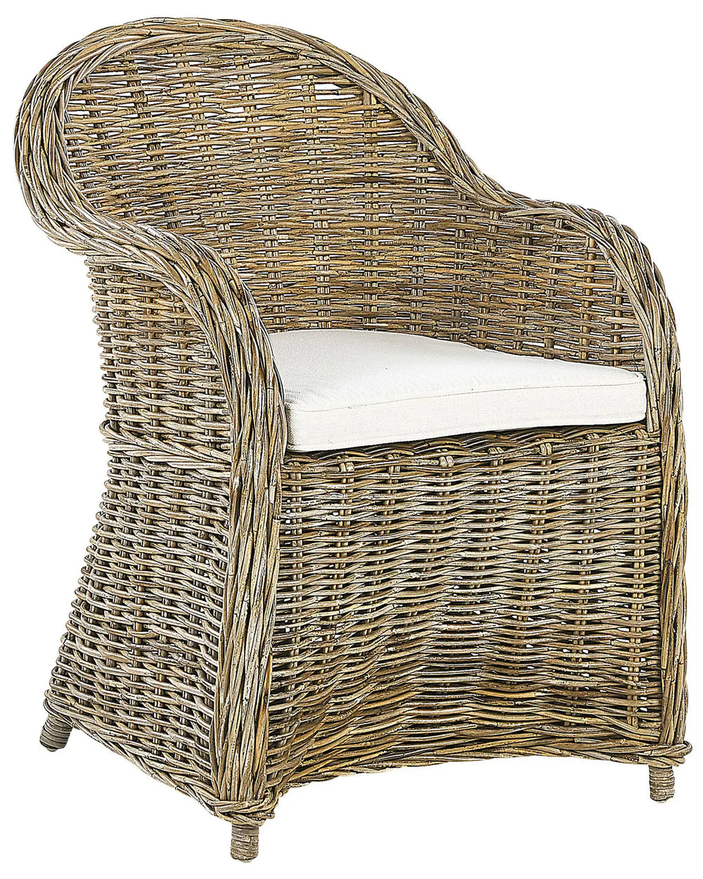 Garden Armchair Natural Rattan with Cotton Seat Cushion Off-White Indoor Outdoor Beliani