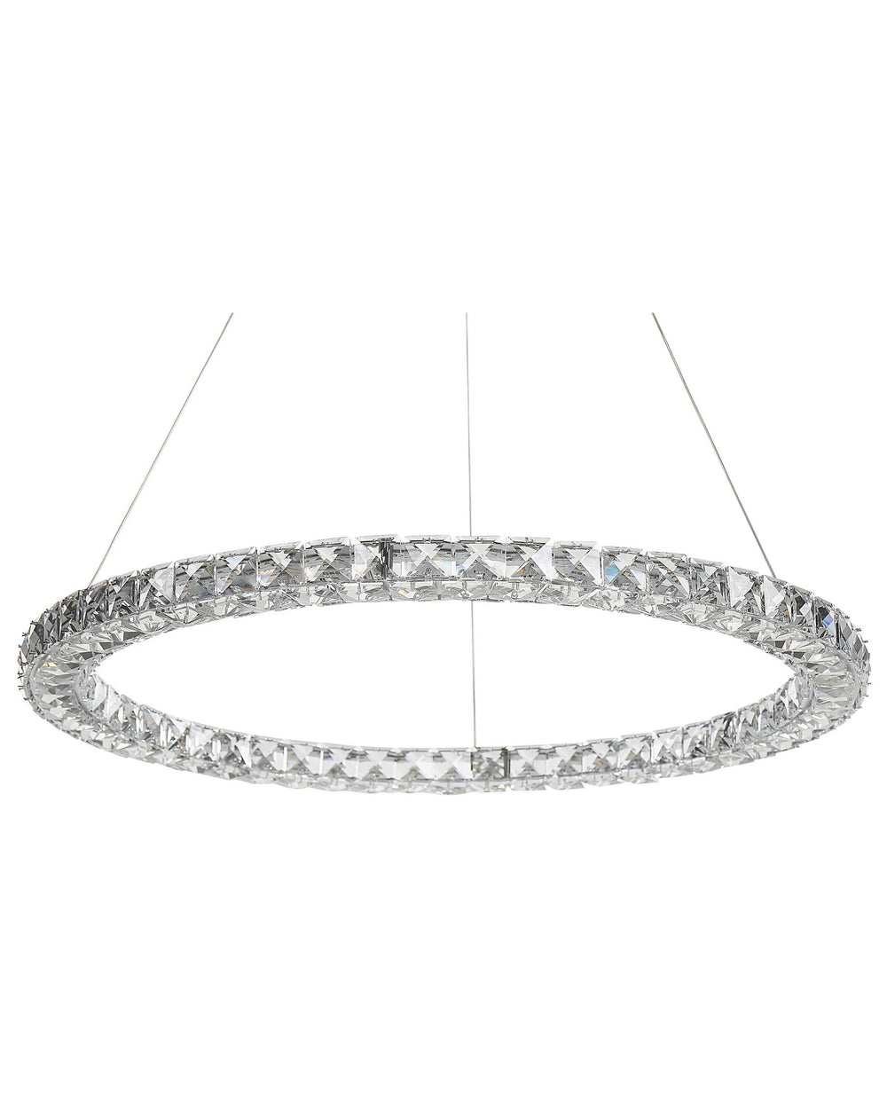 Pendant Lamp Silver Crystal Glass Steel Integrated LED Lights Ring Round Shape Hanging Modern Glamour Lighting Beliani