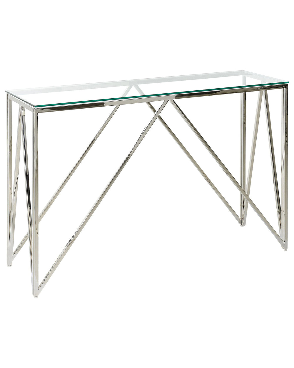 Console Table Silver Tempered Glass Stainless Steel 120 x 40 cm Rectangular Glam Modern Living Room Bedroom Hallway Beliani