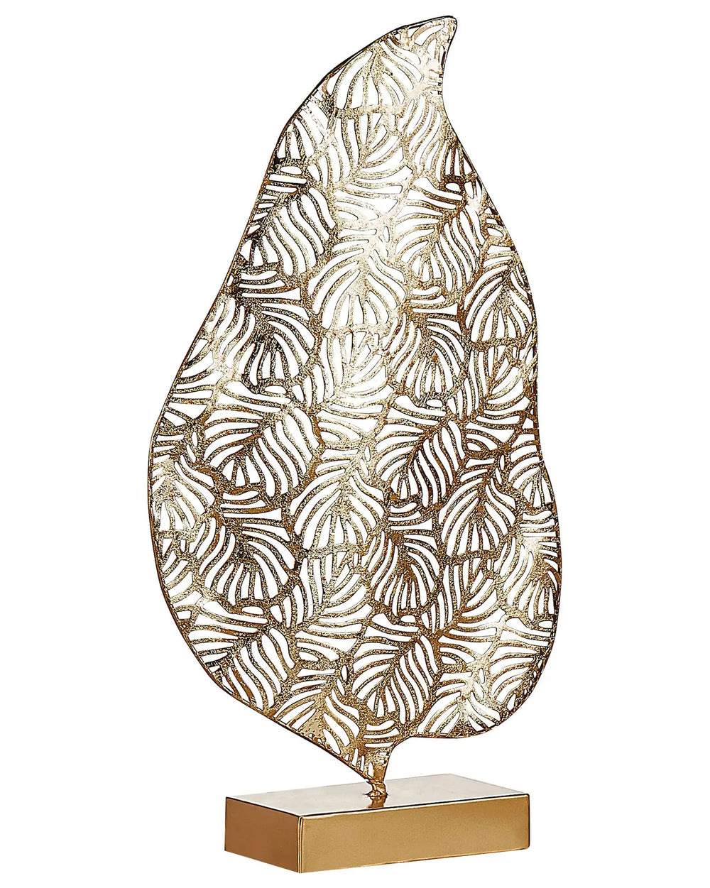 Decorative Figurine Gold Iron 47 cm Statue with Leaf Motif on Stand Openwork Statuette Ornament Decor Accessories Beliani
