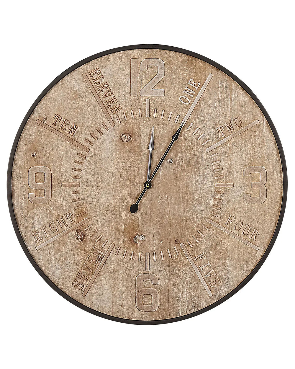 Round Wall Clock Gold Iron Frame Retro Design MDF 60 cm Light Wood Face Beliani is backordered and will ship as soon as it is back in stock.