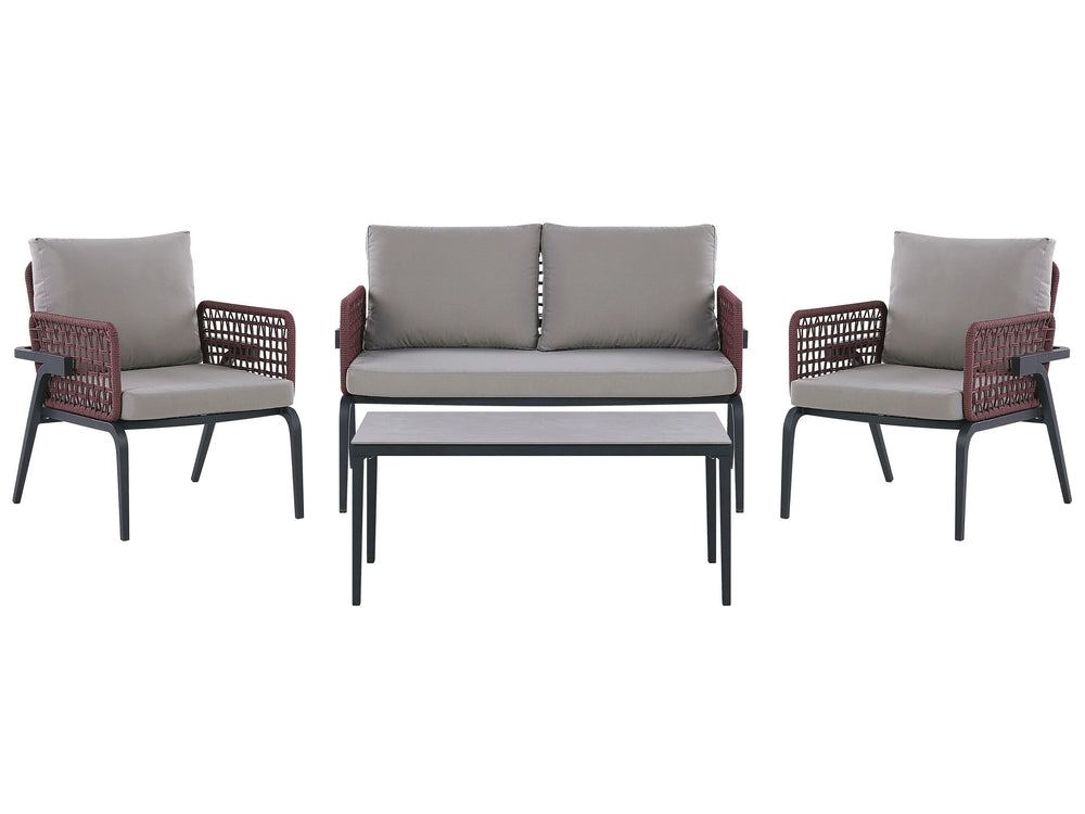 Outdoor Sofa Set Grey for 4 People Aluminium Frame Couch Armchairs with Fabric Cushions Coffee Table Modern Design Beliani is backordered and will ship as soon as it is back in stock.