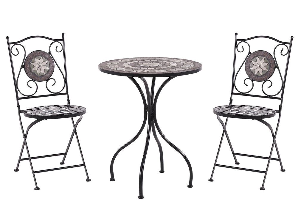 Garden Bistro Set Metal Black Table and Folding Chairs Mosaic Pattern Tiles Vintage Style Outdoor Set Beliani