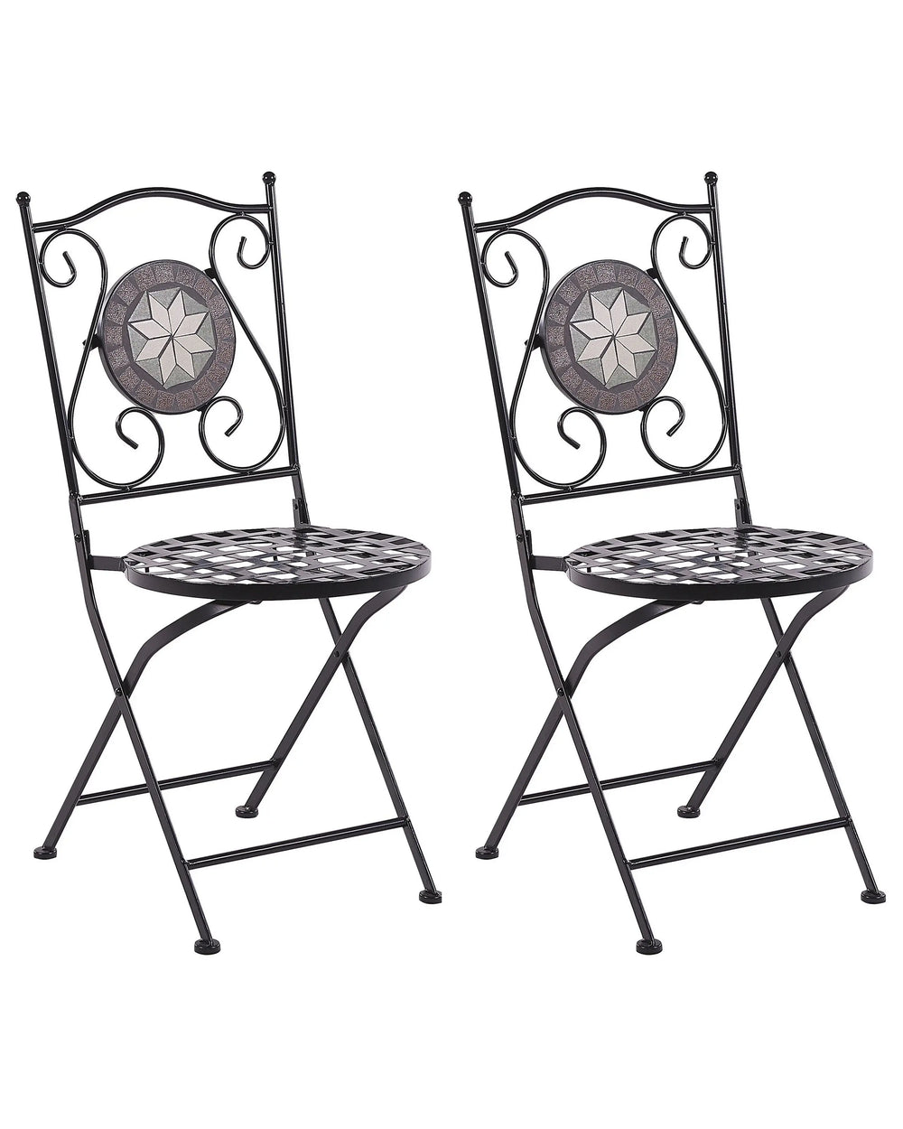 Set of 2 Garden Chairs Black Metal Folding Carved Backrest Mosaic Tiles Pattern Vintage Style Beliani
