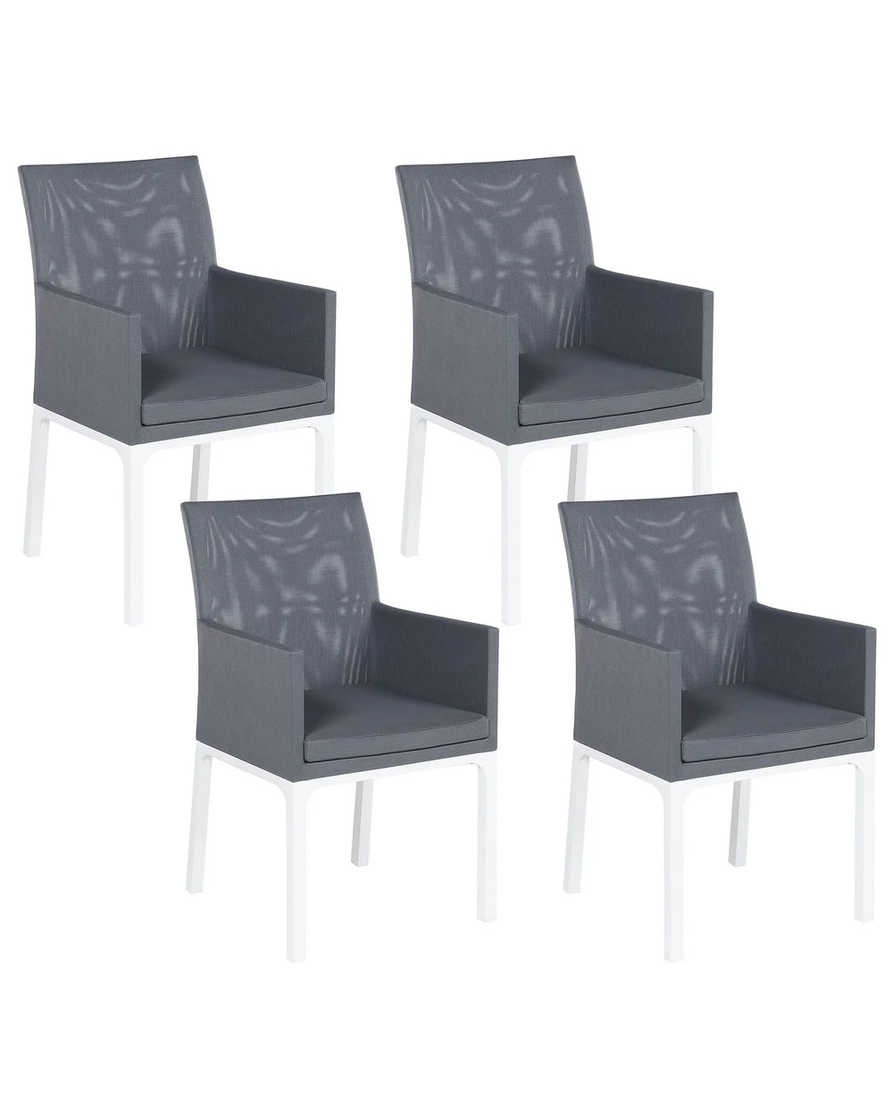Set of 4 Garden Chairs Grey Textilene Upholstery Aluminium White Legs Quick Dry Foam Beliani
