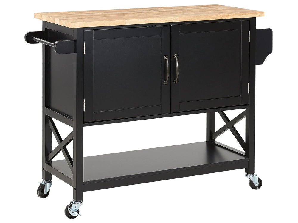Kitchen Trolley Black MDF Light Wood Top Storage Cabinet Shelf Scandinavian Beliani
