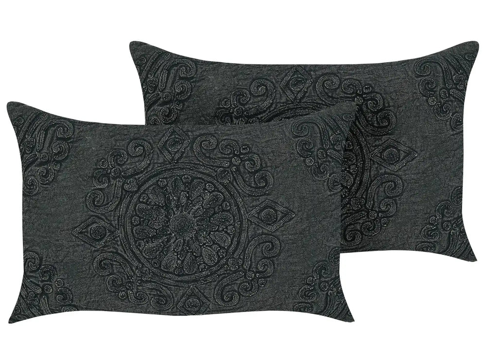 Set of 2 Decorative Cushions Grey Cotton Mandala Pattern 30 x 50 cm Oriental Vintage Decor Accessories Beliani