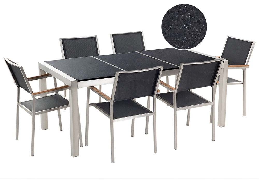 Garden Dining Set Black with Black Granite Table Top 6 Seats 180 x 90 cm Triple Plate Beliani