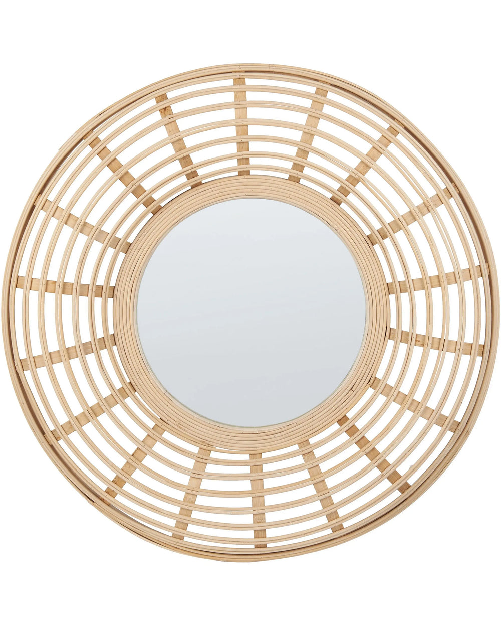 Wall Hanging Mirror 60 cm Home Dcor Round Frame Bamboo Wood Minimalist Design Living Room Furniture Bedroom Beliani