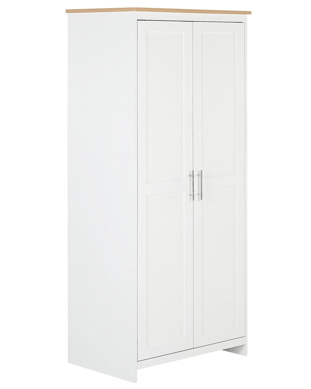 Wardrobe White Particle Board 79 x 52 x 180 cm Scandinavian Hinged Doors Shelves Clothes Rail Bedroom Storage Beliani